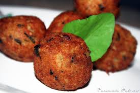 Coloque em 3 pratos, o leite, os ovos batidos com um garfo, e a farinha de rosca. Depois de frio, fazer bolinhos com a massa e passar primeiro no leite, depois nos ovos e finalmente na farinha de rosca. Fritar em óleo quente e escorrer sobre papel toalha. Servir com limão ou molho de pimenta.